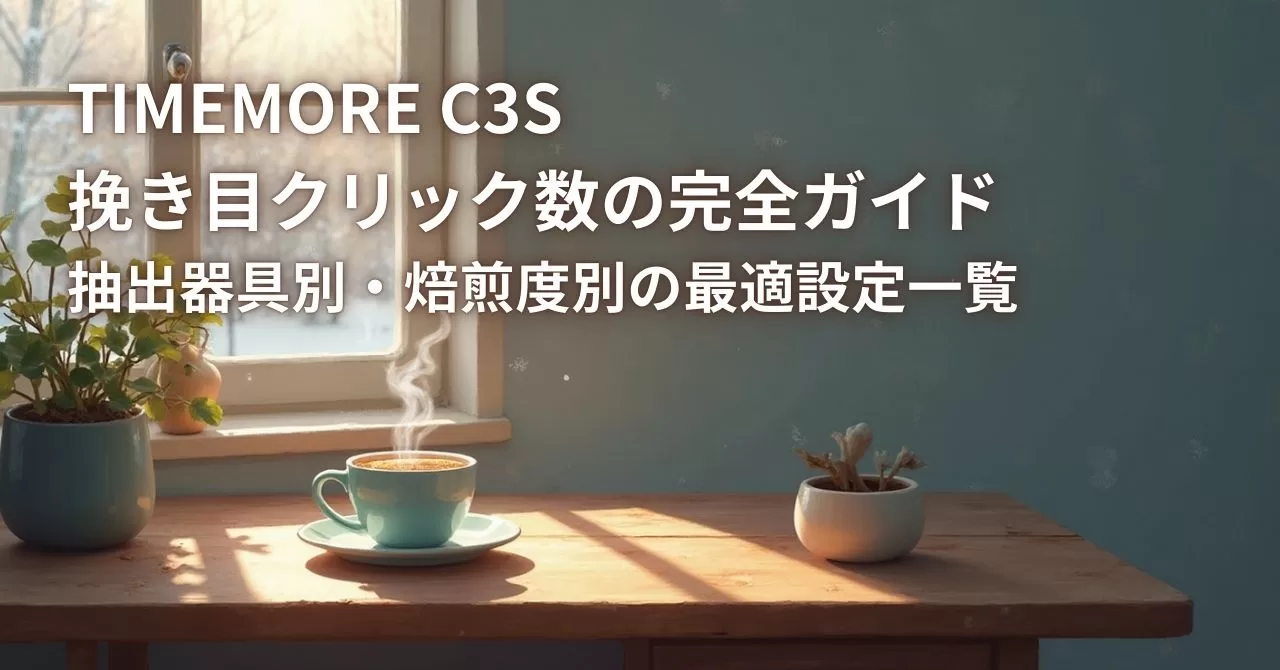 この基準を押さえて±1クリック調整すれば、誰でも安定して美味しいコーヒーが淹れられます。C3Sを使いこなして、自分好みの一杯づくりを楽しんでください。