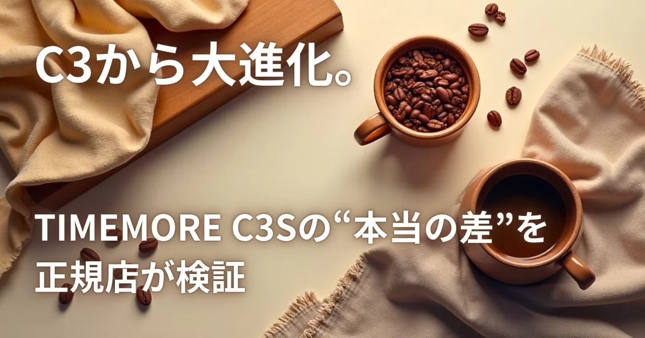 この記事では、TIMEMORE C3Sと旧モデルC3の違いを正規店視点で徹底解説します。まず「C3Sは買いか?」という疑問に即答し、C3からの進化点を「挽き心地」「味」「耐久性」の3軸で整理。初心者でも理解できるよう専門用語を避けて噛み砕いて説明します。